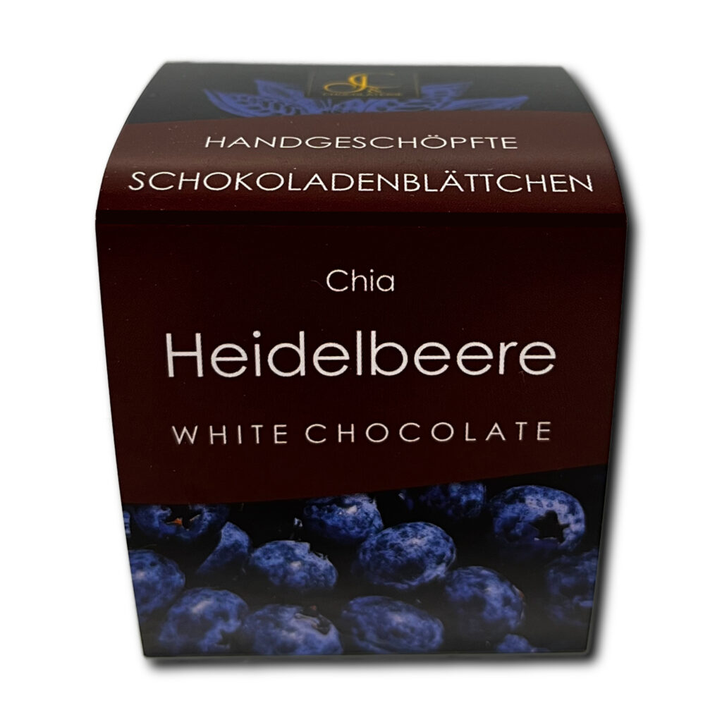 Weiße Schokolade mit Bio Chiasamen und gemahlenen Heidelbeeren