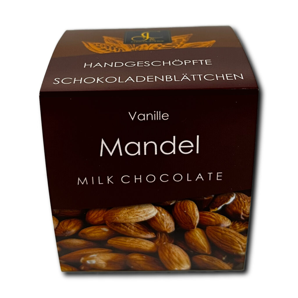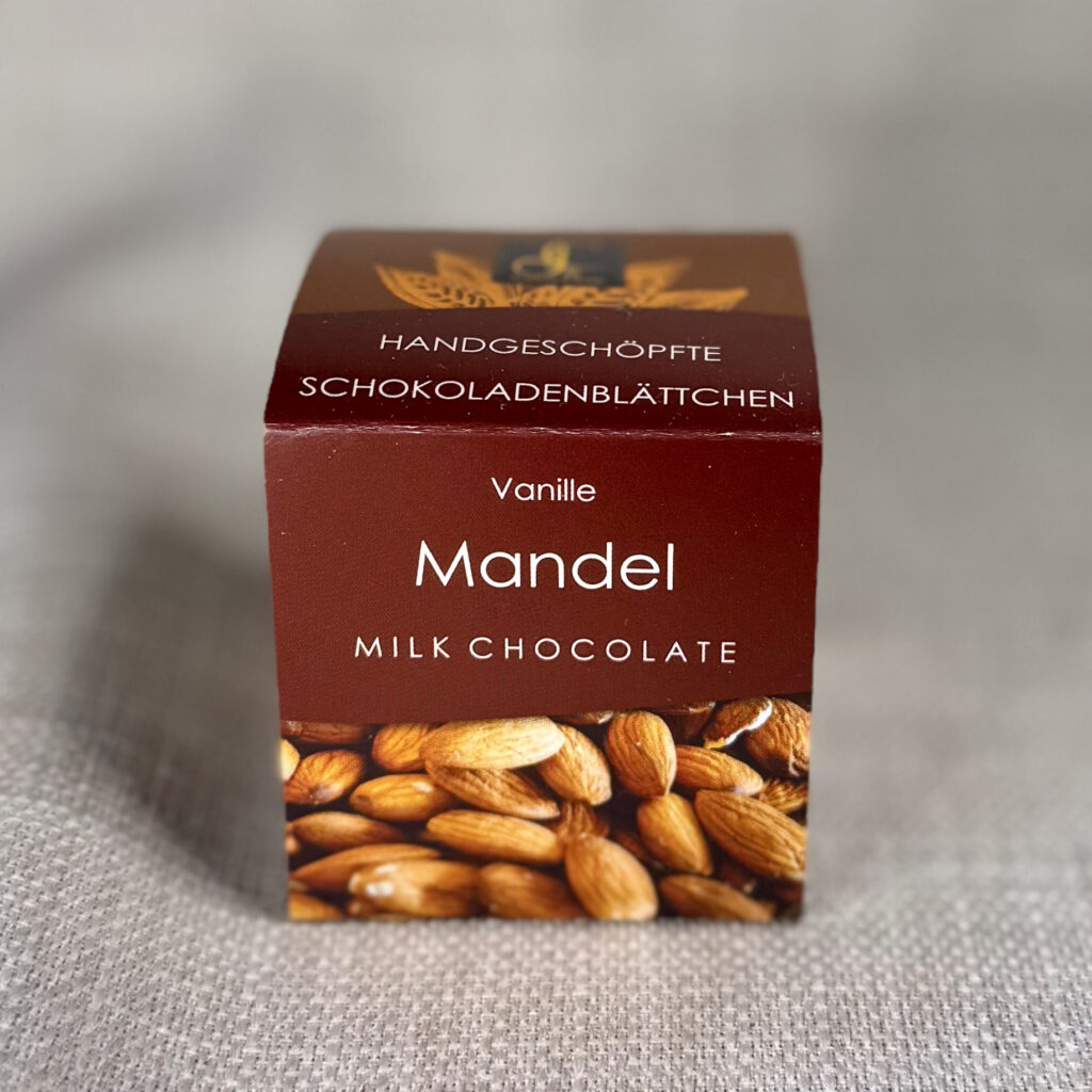 Vollmilch Schokolade verfeinert mit frisch gerösteten Mandeln und für den ganz besonderen Geschmack extra Bourbon Vanille